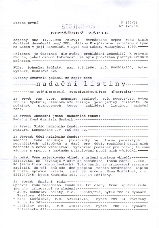 Vyřizuje paní Matoušová (kancelář za sborovnou).